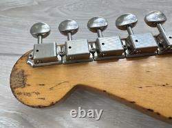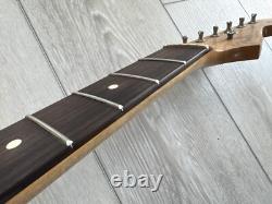 Je construis rarement des guitares maintenant, mais j'ai beaucoup de pièces intéressantes que j'ai récupérées au fil des ans. Ce neck est neuf, parfait et a besoin d'un foyer. Il est droit et vrai, sans problèmes, et le truss rod fonctionne comme il se doit. Ce neck a toute la magie d'un neck Fender Custom Shop ou d'un véritable neck vintage à un prix de joueur. Le numéro de série est MX24088912, il a été fabriqué en octobre 2024, et voici les spécifications de Fender sur ce neck Special Edition Road Worn Vintera II.