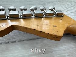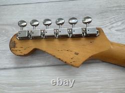 Ce véritable, modèle Open Box Fender Special Edition Road Worn neck a été conçu pour une Strat #1 inspirée par SRV et semble tout à fait légitime, jusqu'à ce que le décalque Fender original donne l'impression d'être au-dessus de la finition, comme les Strat des années 1960. C'est un neck Fender Vintera II Road Worn Stratocaster NOS, professionnellement relicé, avec une touche en palissandre, et le travail de relic sur le Nitro d'usine le porte à un autre niveau ! Il ressemble vraiment à un neck vintage, mais sans le prix vintage. Il y a beaucoup de checking et d'usure sur le Nitro, mais la touche en palissandre et les frettes Medium Jumbo sont comme neuves. 848 au premier fret et 972 au douzième fret.